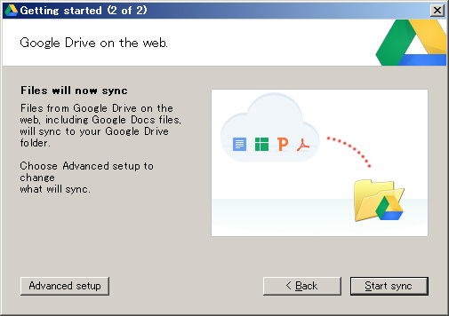 一番左のAdvanced Setup は同期させるフォルダや同期させるGoogleDocumentを指定できます。