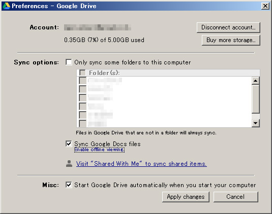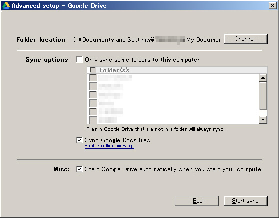 2段目のチェックボックスは、GoogleDocumentすべてを同期させたくない場合に、ここで選択することができます。